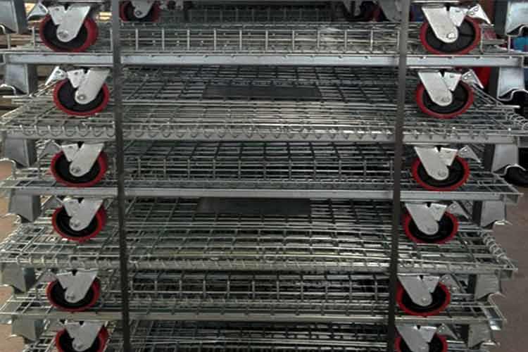 带轮仓储笼可配合牵引一起使用,提高货物周转效率,减小劳动强度。同时用于原料半成品及成品的存储、分类、运输与存放。既可作立体的存运、装卸、运输工具,又可作物流周转箱使用,还可作售货工具。适用于物流周转各...